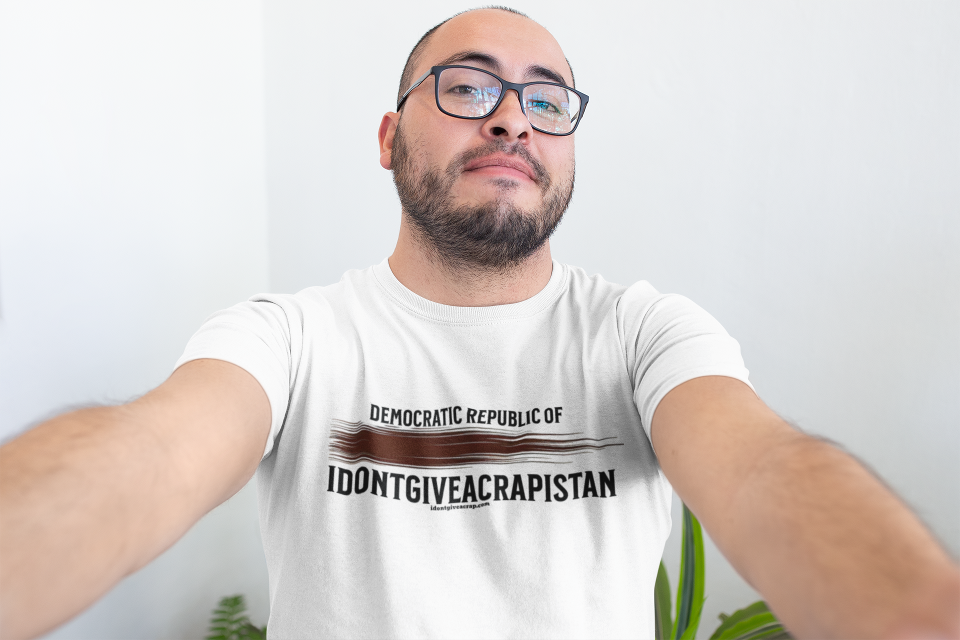 Show off your bold attitude with the official flag of the Democratic Republic of Idontgiveacrapistan. Hang it in your office, home, or anywhere you want to make a statement. Makes a great gift for those with a carefree attitude and a statement to make. Perfect for rebels and non-conformists.